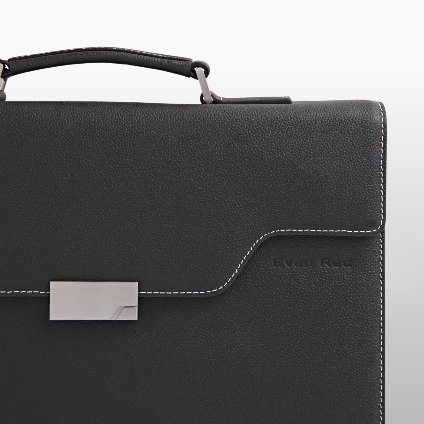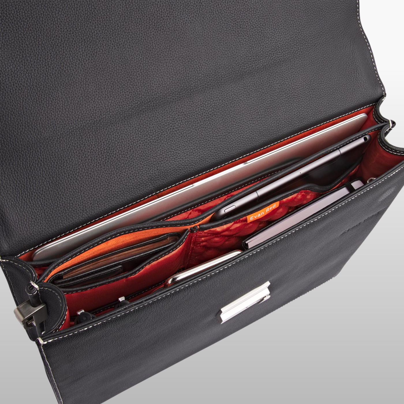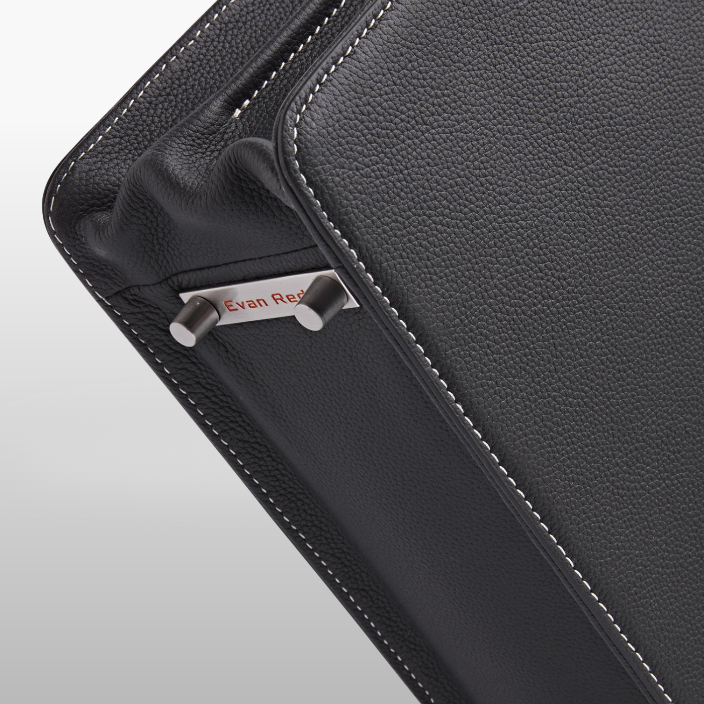 Deep Black Leather Briefcase Evan Red